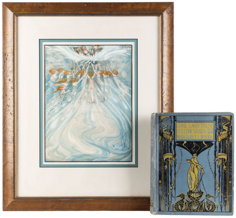 Also on offer is an original watercolor by John Hancock, a mysterious poet, illustrator, and mystic whose watercolor paintings are of imagery given to him in a vision. Hancock was diagnosed with Bright’s disease and died by suicide at 22. With his early death, his artwork is exceedingly rare, with this watercolor expected to exceed $1,000 at auction.