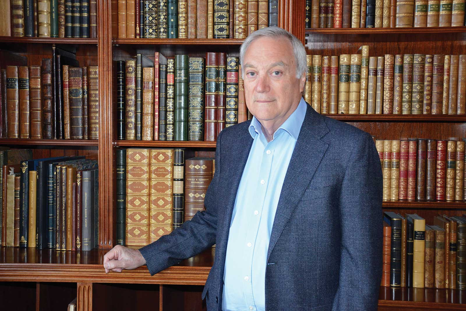 Of the seven rooms in the Kossow household, all but one are filled to overflowing with specially designed bookcases, several of which are brimming with books on India, every one of them in the best condition copy Kossow could acquire. Most of these are protected by custom-made slipcases or clamshell boxes, and even those are impressive. For example, he commissioned a box to hold a tall folio, the earliest known example of lithographic printing in India titled Heads of Families in States Independent or Protected. The box and its inlays were created by Bill Gardner, a master leather box maker, and the gilding was applied by a specialist from the famous fine binders, Sangorski & Sutcliffe. “You can see,” Kossow pointed out, “I put as much time, effort, and expense into the display and preservation of early books on India as I do in obtaining the books themselves.”