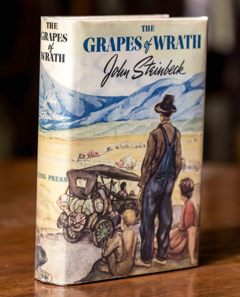 The Grapes of Wrath by John Steinbeck (New York: The Viking Press, 1939). First edition. Unclipped, wraparound pictorial dust jacket. Offered at the ABAA virtual book fair for $11,000.