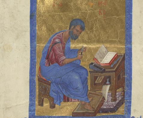 Saint Mark, about 1325-1345. Tempera colors and gold leaf on parchment.