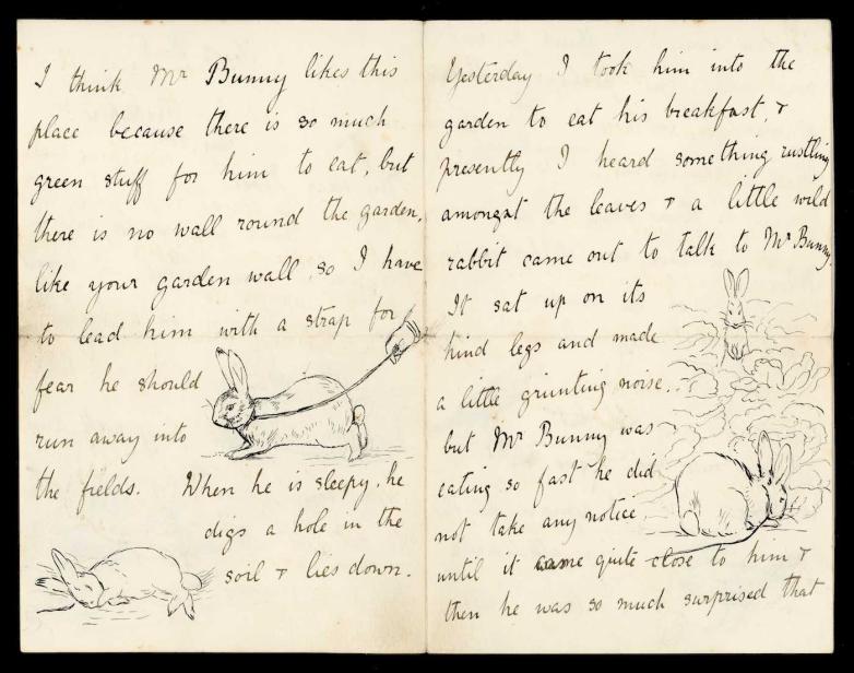 Four themed display areas will trace Potter’s life from childhood, featuring a family album of photographs taken by her father and her earliest drawings and sketchbooks aged 8, through her original sketches of gardens and landscapes that are recognizable in The Tale of Benjamin Bunny and The Tale of Mrs. Tiggy-Winkle, right up to her emotional final letter before her death in 1943 to her shepherd and friend Joseph Moscrop. Also on show will be: