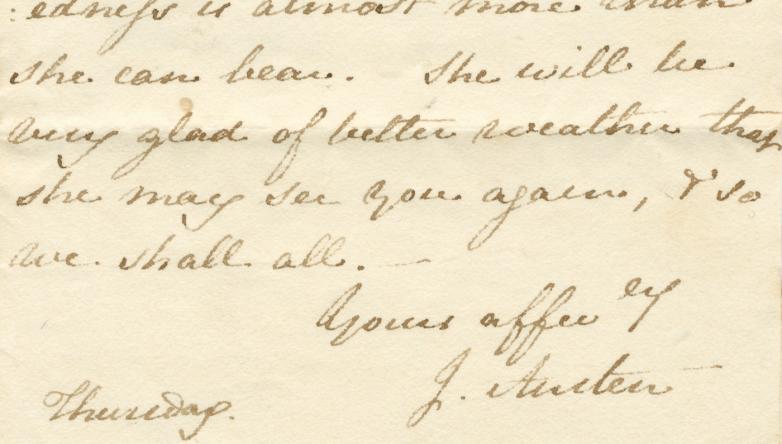 Jane Austen autograph letter, 1816. Estimate: £60,000-80,000 ($79,000-105,000)
