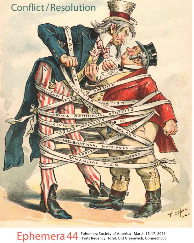 According to the organisers: "While war, national and international, may first come to mind, our topic will also include significant social or political movements where ephemera has been produced to advance an argument or as evidence of what transpired. Ephemera has also been a crucial component in propaganda and disinformation campaigns in a variety of conflicts."