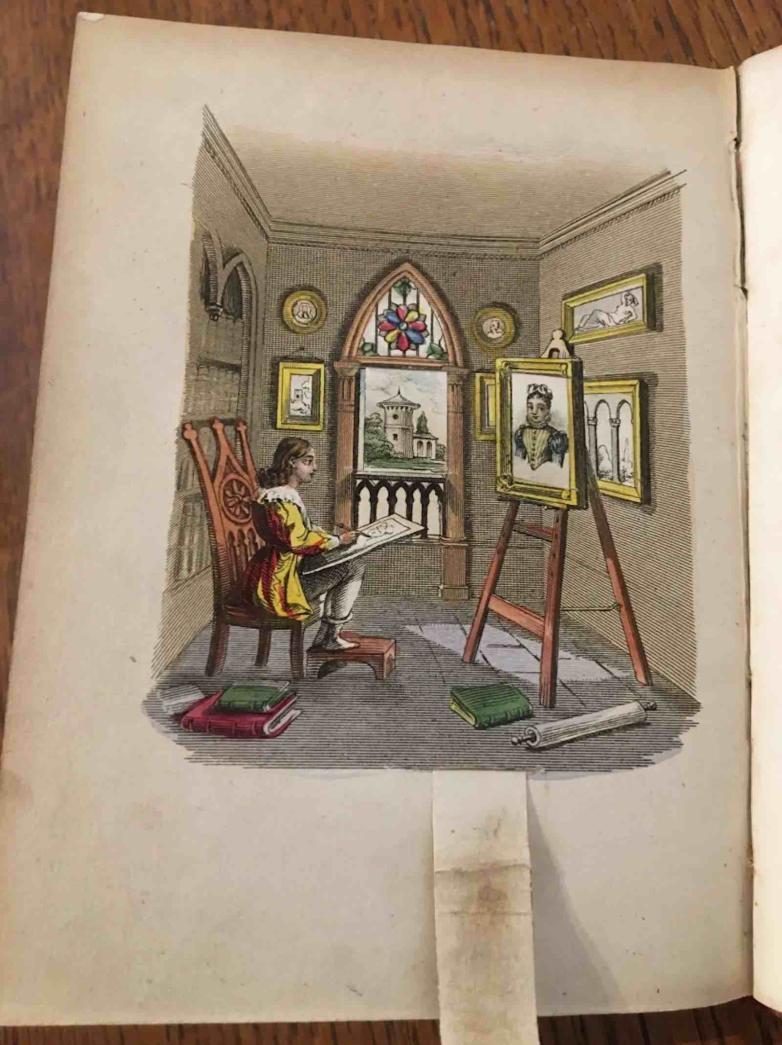 * Paul Foster is bringing a book sometimes described as the first interactive book published, but certainly the first to use movable tabs. Le Livre Joujou by M. Bres (third issue from circa 1875) has 13 hand-coloured illustrated plates with pull tabs to change the image