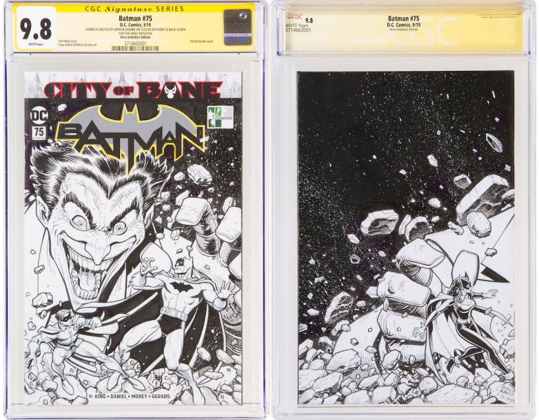 The nonprofit Hero Initiative, now in its 20th year, began auctioning these singular one-offs in 2007, starting with The Spider-Man 100 project. In years past these covers were sold during comic conventions and through retailers. But because of the global pandemic, DC Comics and the Hero Initiative made The Batman 100 Project available exclusively through the Dallas-based auction house.