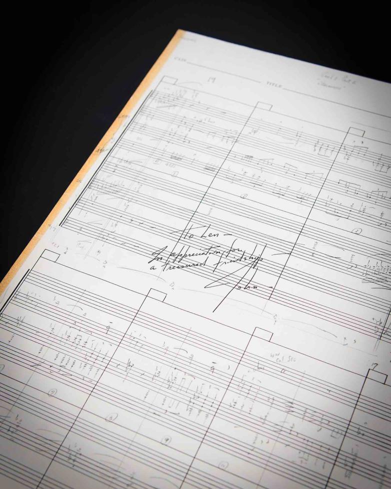 As thanks for helping to bring the project together, Williams gave Engel his handwritten sheet music for the film’s opening title track, Star Wars Main Title. Used in the post production stage, the manuscript contains Williams’s handwritten music notes along with instruments and directions: “Maestoso,” “6tpts,” “4 troms,” and “Stg.” Prominently featured in the center is an inscription, “To Len – In appreciation for a treasured friendship – John.”