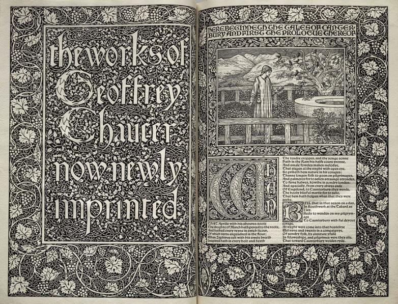 Earlier this year, the William Morris Society in the United States announced an international effort to commemorate the founding of the Kelmscott Press in 1891. Thus International Kelmscott Press Day appeared on our calendar: June 26, 2021, the 125th anniversary of the publication of the Kelmscott edition of The Works of Geoffrey Chaucer. Designed by Morris, with illustrations by artist Edward Burne-Jones, the Kelmscott Chaucer is considered one of the most beautiful books ever printed.