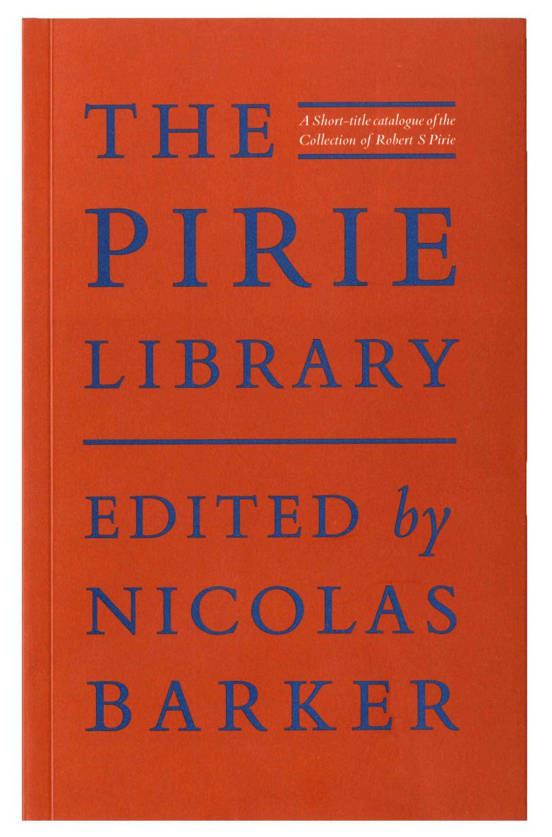 The second volume by Barker is a short-title catalogue of the Robert S Pirie collection called The Pirie Library. Pirie, an American collector of sixteenth- and seventeenth-century English literature who died in 2015, is one of the last entries in All Went Well, and that obituary is reprinted here, along with a note on “Bidding for Pirie” by Quaritch consultant Nicholas Poole-Wilson and indexes of the Pirie library by author/title; provenance; sources; binders and binding styles; armorials, devices, etc.; and, lastly, prices achieved at the Sotheby’s auction of his library in December 2015. Bound in stiff card wrappers, this slim volume belies the remarkable amount of research evidently contained inside. Pirie’s library has been called “one of the finest private libraries of English literature, not just of our time but of all time,” making this catalogue a must for historians of book collecting.