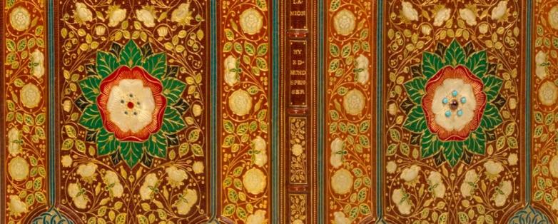A further highlight of the auction is a beautiful jewelled binding adorned with garnets and turquoise on a manuscript on vellum, written, illuminated and bound by Francis Sangorski and George Sutcliffe (estimate: £10,000–15,000). Inside, comprising 24 stanzas, is Edmund Spenser’s poem recalling every hour of his wedding day to Elizabeth Boyle in 1594. Sangorski and Sutcliffe founded their bindery in 1901 and were the first to ‘create the art of jewelled leather binding’. Their first jewelled binding covered an edition of Spenser’s Epithalamion (now at the British Library) and many of its design elements are found on the present manuscript of the same Spenser poem. Sangorski and Sutcliffe’s greatest masterpiece – the Great Omar, created in 1910 – famously went down with the Titanic.