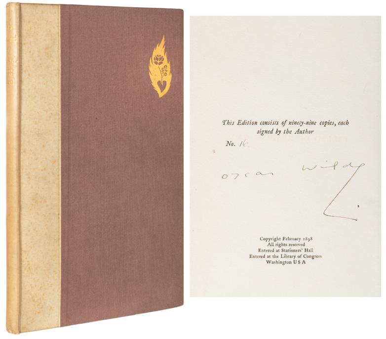 · Lot #221, a copy of Oscar Wilde's (1854–1900) The Ballad of Reading Gaol, was estimated at $7,000-10,000 and brought $26,400. This limited edition copy, number 16 of 99, was published in London by Leonard Smithers in 1898 and was signed by Wilde.