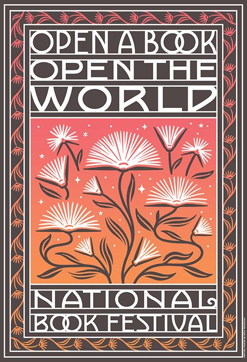 The annual National Book Festival poster has also been unveiled. This year it was designed by New York City-based graphic designer Dana Tanamachi, who said she was inspired by the idea of an open book resembling a blossoming flower.