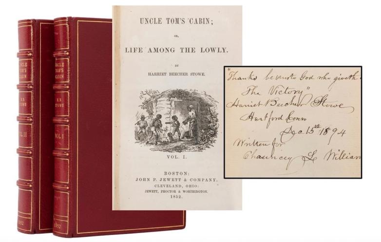 A first edition, first printing of Harriet Beecher Stowe's two-volume Uncle Tom’s Cabin; or, Life among the Lowly made $9,000. It retained its cloth slipcase and came with an autographed note by Stowe.