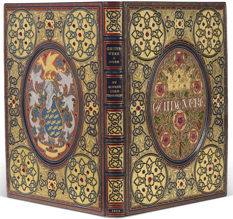 Jeweled binding by Alberto Sangorski on an illuminated manuscript copy of Tennyson's Guinevere, offered at Christie's this week.