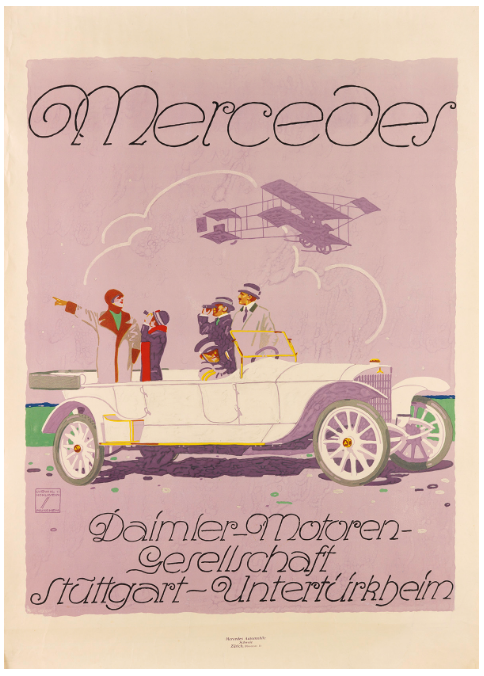 1914 Ludwig Hohlwein poster for Mercedes, offered at Swann Galleries this week.
