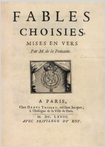1668 edition of Jean de la Fontaine's Fables, offered at ALDE on Friday.