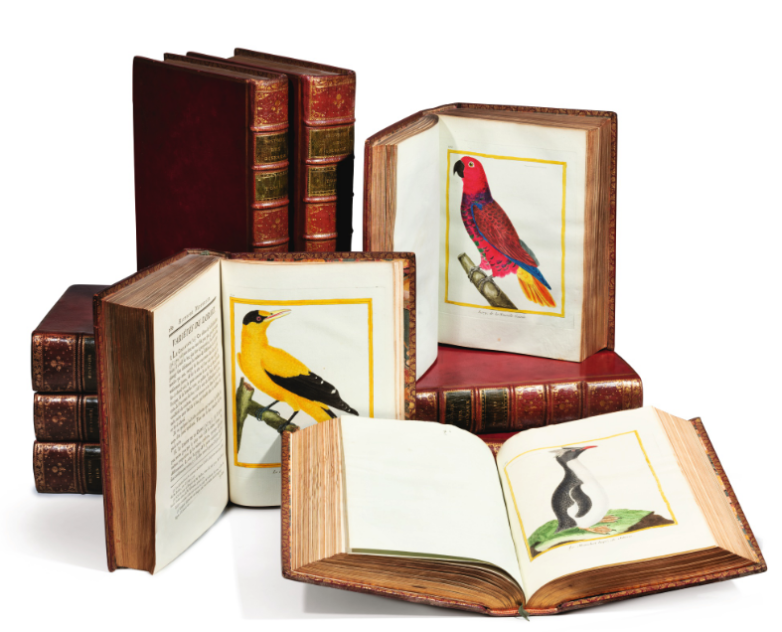 At Sotheby's Paris on Monday, November 18, Bibliothèque Jean-François Chaponnière : Une collection Genevoise, in 285 lots. A 1772 Mozart manuscript of two complete minuets is expected to lead the way, estimated at €150,000–200,000. Buffon's Histoire Naturelle des Oiseaux (1770–1786), from the library of Abel Smith of Woodhall Park, could sell for €40,000–60,000. They will also sell 47 lots of Artistes et Relieurs: Livres et Manuscrits, including Delaunay and Cendrars' La Prose du Transsibérien et de la Petite Jehanne de France (1913), one of 28 copies on Japan paper (€200,000–300,000). There are some truly fabulous bindings in this one, so do have a look through the catalogue.