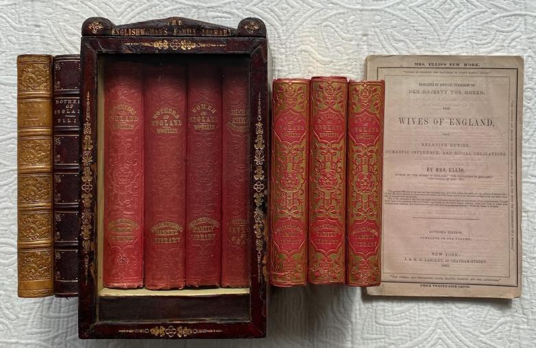 An original publisher’s desktop red morocco bookcase made to contain and display a set of four of Mrs. Ellis’s ‘lifestyle’ works sold at the August 20 sale.