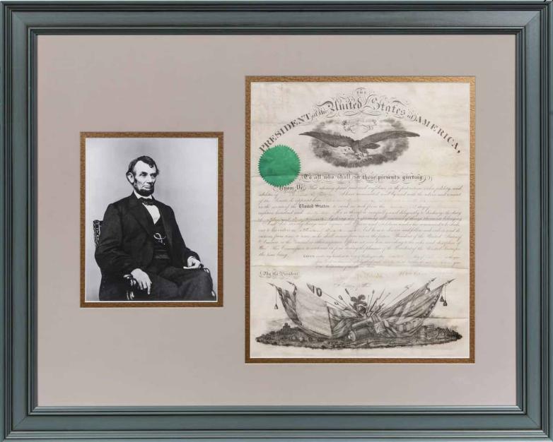 The collection includes a document signed by Lincoln and his Secretary of War, Edwin M. Stanton appointing a new Assistant Quartermaster to oversee supply logistics for Union forces during the Civil War in 1862.