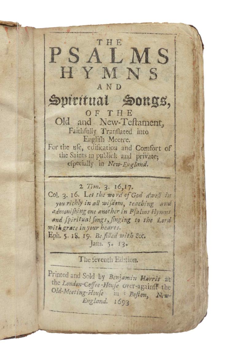 A unique copy of the earliest obtainable American edition (1693) of the Bay Psalm Book. Estimate: $300,000-500,000