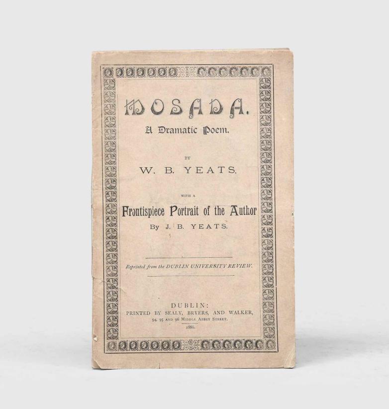 This copy of Mosada was last publicly exhibited at Trinity College Dublin in 1956. Peter Harrington offered it for sale over the weekend at the Boston Antiquarian Book Fair, which took place October 27-29, 2023. The book has since been sold at the fair.