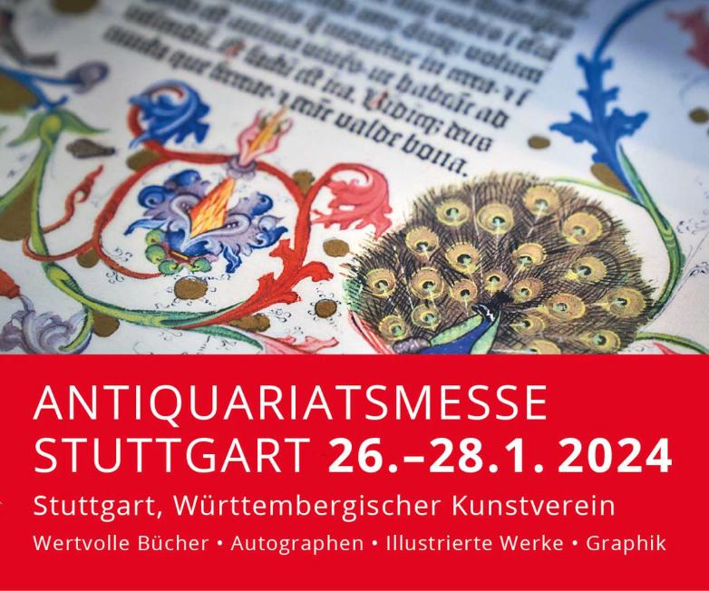 "Bookshops, publishers, libraries and events such as the Stuttgart Rare Book Fair occupy an important place in our cultural landscape," said First Mayor of the City of Stuttgart, Dr Fabian Mayer. "I look forward to January 2024, when people who are all passionate about books, their content, but also their creation and their history, will meet in Stuttgart."