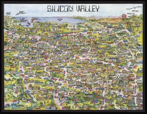 The map isn't all just tech and computer companies; universities like Stanford and Santa Clara receive their due, and the local Chuck E. Cheese--founded by fellow Silicon Valley scion and Atari creator Nolan Bushnell--is promoted as the best spot for a kid's birthday.