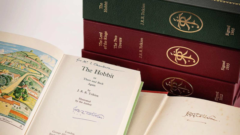 A signed collection of J. R. R. Tolkien's four most celebrated works, comprising The Hobbit and The Lord of the Rings trilogy, has sold for $61,599 at RR Auction's recent Fine Autographs and Artifacts auction.