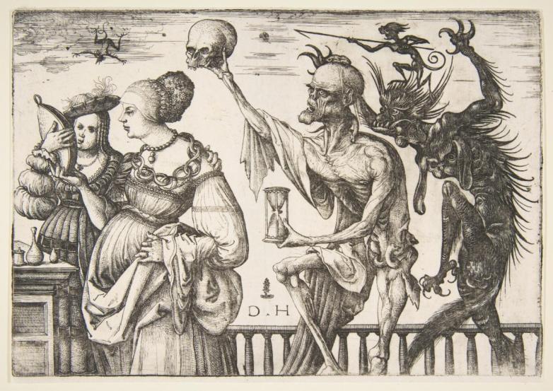 Daniel Hopfer (German, 1471–1536). Death and the Devil Surprising two Women, ca. 1500–1510. Etching; first state of two.