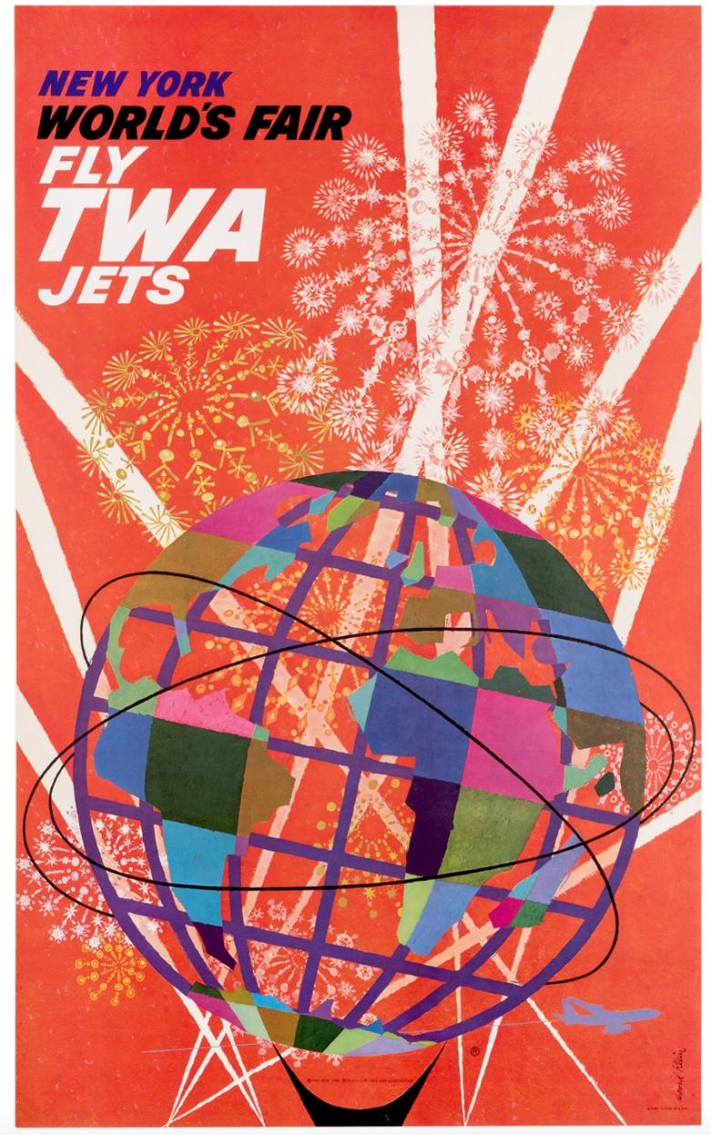 Klein, David (1918-2005). New York World’s Fair. Fly TWA Jets. Estimate $1,400-2,000.