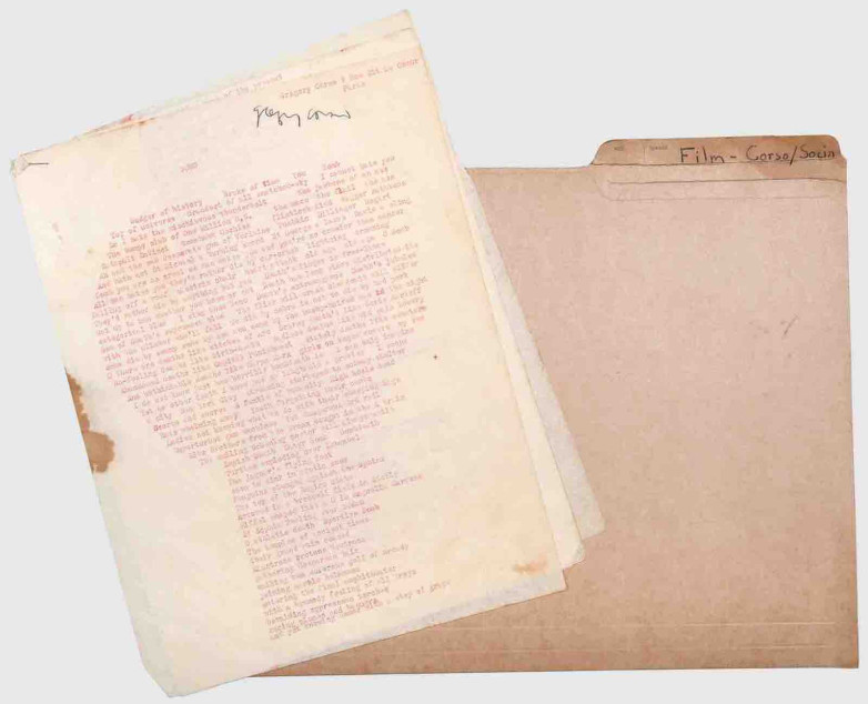 - Gregory Corso, Bomb (1958), the original signed typescript of the Beat-era poem, one of the first literary responses to nuclear warfare