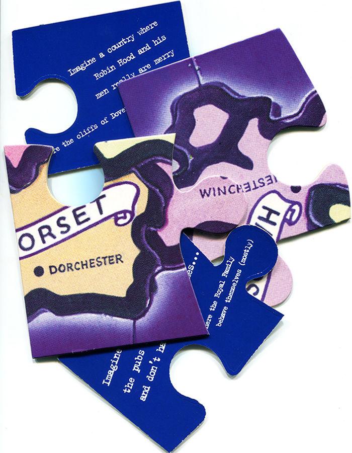 Quill & Brush offered this vibrant promotional advertising puzzle for Julian Barnes’ 1998 novel, ENGLAND, ENGLAND, together with a correspondence card signed by the author. It was priced at $300.