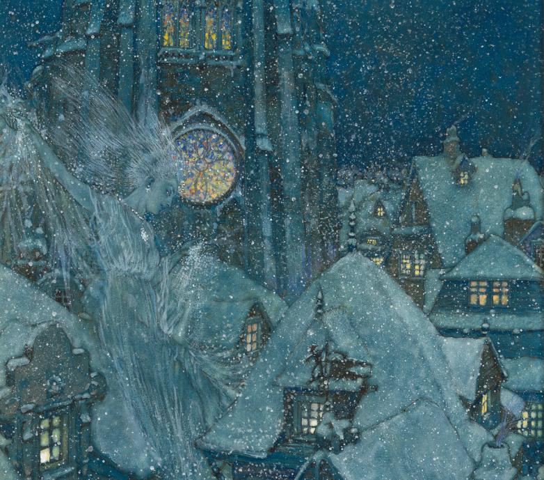 Detail from Edmund Dulac, The Snow Queen, illustration for the chapter "Second Story: A Little Boy and a Little Girl" from The Snow Queen published in Stories from Hans Andersen. Watercolor, gouache, pen and ink, 1911. Estimate $50,000-70,000