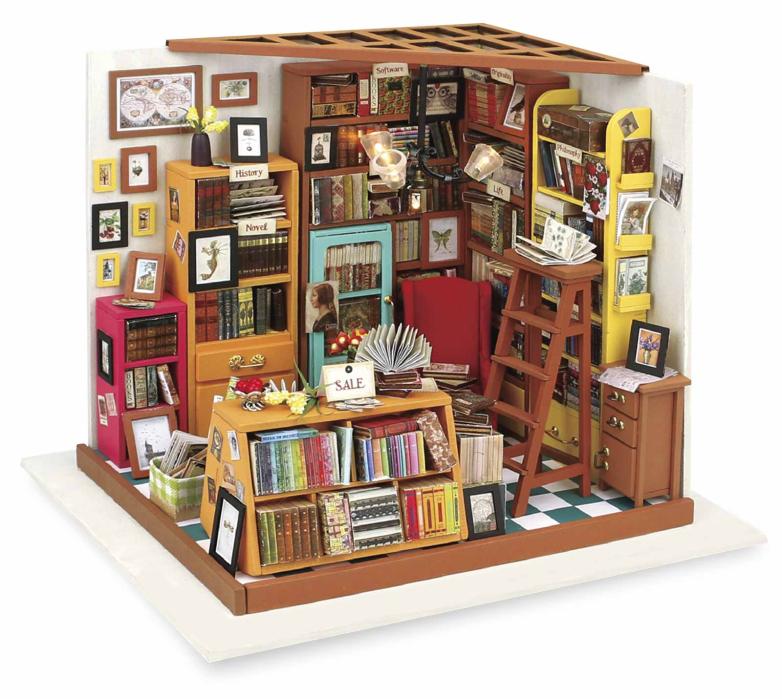 Curate your own physical bookshop without a major investment: this dollhouse-sized DIY kit includes mini books, bookshelves, shelf labels, prints and paintings, cabinets, a high-backed reading chair, a stepladder, a tiny table, a vase of flowers, and working lights (two 3V batteries not included). According to the company, it takes about twenty hours to assemble, and when finished, measures about 7" wide by 9" high by 7-½" deep. If all goes well, it could be a delightful addition to one’s shelves. $39.95