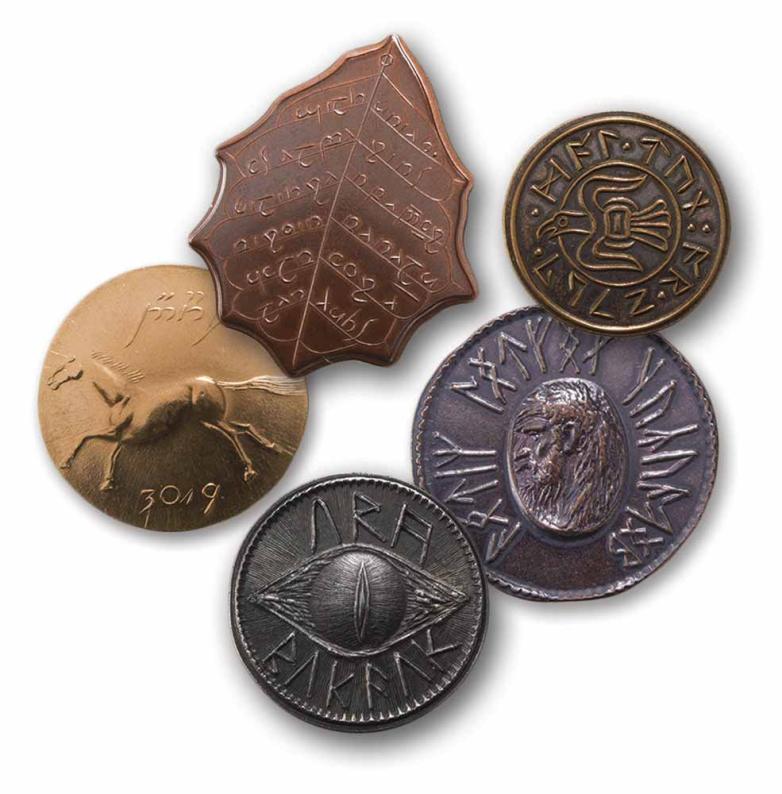Fans of The Lord of the Rings will undoubtedly appreciate this licensed set of ‘antiqued’ coins from Shire Post Mint. Made to look like the change that circulates in Middle Earth, these brass, copper, and iron coins are made in the U.S. using traditional minting techniques and featuring the artwork of Greg Franck-Weiby and Tom Maringer. Variant sets and single coins available, as well. $40