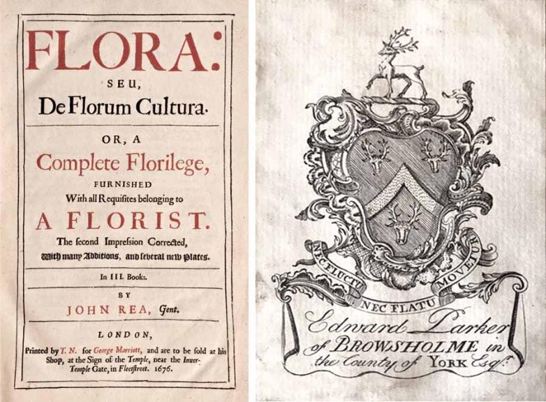 $1,850 John Rea’s Flora: seu, De florum cultura … (London, 1676) is certainly one of the most important gardening books of its time. But what makes this one special is the armorial engraved bookplate of Edward Parker of Browsholme (1658–1721). Browsholme Hall, has, since 1507, been the home of the Parker Family, a current member of which bought the Flora, telling the bookseller that while he was neither a collector nor a bibliophile, “the thought of restoring some of the library of Edward Parker is an attractive notion.”