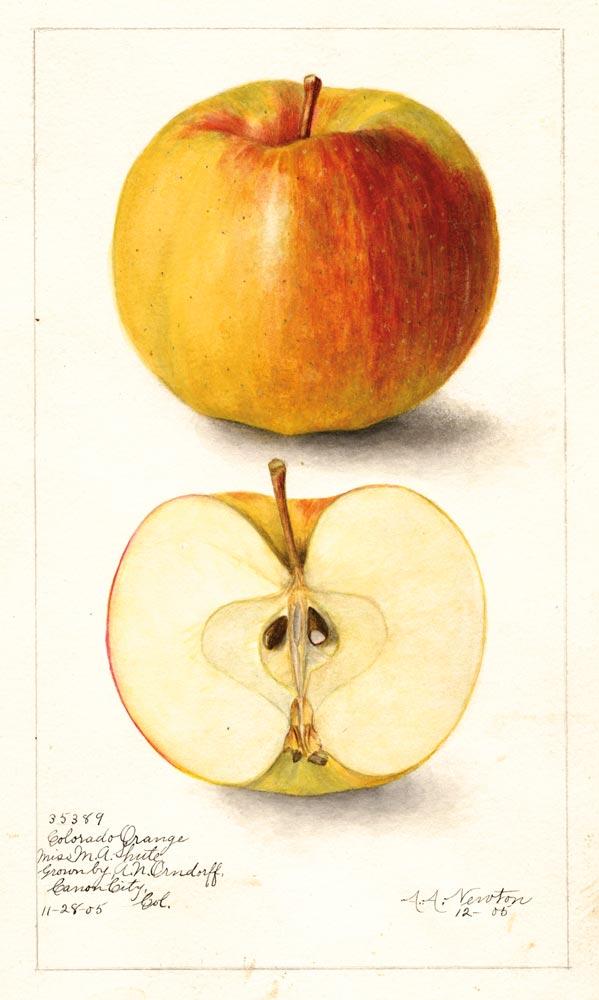 In 2006, Jude came home from a road trip with a copy of The Peaches of New York (Albany, 1917) by U. P. Hedrick, purchased at an antiquarian bookshop. “It cost a couple hundred bucks,” Addie recalled. “I thought he was crazy.” Despite the title, the century-old book is comprehensive in its approach, and it held answers to their questions: What’s growing in Colorado’s old orchards? How can we bring these rare varieties back? Searching AbeBooks.com and out-of-the-way bookstores, they’ve since acquired other volumes of pomology—the science and practice of fruit growing—including S. A. Beach’s Apples of New York (Albany, 1905).