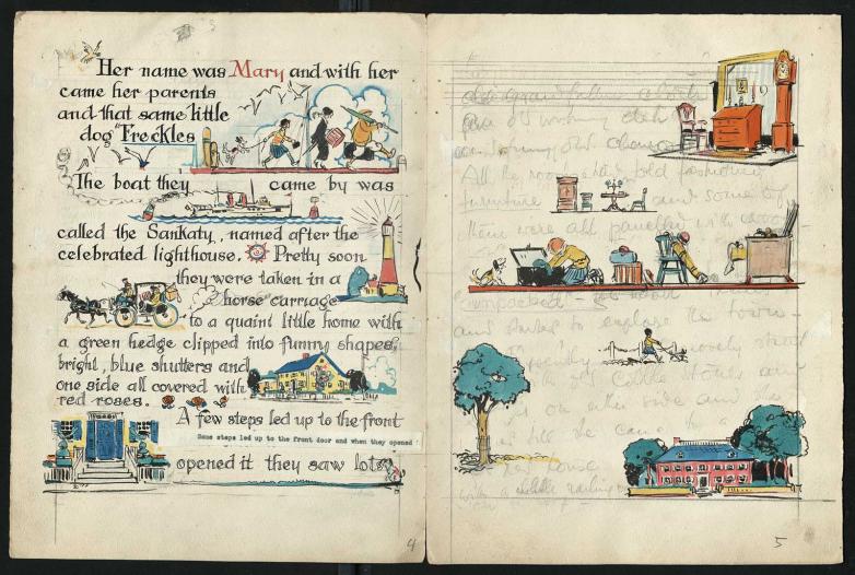 “He was working in ink,” Plunkett said. “The children’s books were ink with watercolor. The books are very lively with a very fluid integration of images and words.”