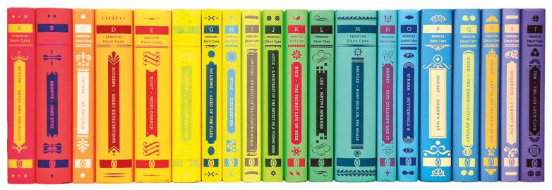 Penguin’s Drop Caps is a series that combines literature and art in a beautiful—and intrinsically collectible—set of books. Once complete this summer, twenty-six classic works of literature will have been republished in the Drop Caps, each hardcover featuring a specifically designed illustrated drop-cap letter by type designer Jessica Hische. The brainchild of Penguin designer Paul Buckley, the series creates a striking visual pop on the bookshelf.