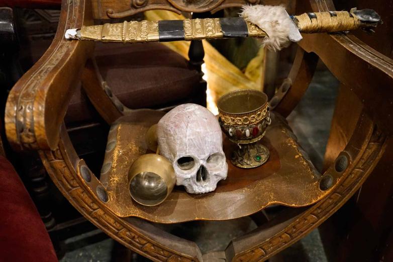 Taylor displayed a set of Shakespeare’s complete works from 1805 that was owned by the first John Barrymore, given to the SSA by John Barrymore II when his son, John Barrymore III, was playing Hamlet in nearby Carmel-by-the-Sea. Close at hand is a three-volume set of The National Shakespeare, a faithful reproduction of the first folio of 1623, produced with the Royal Society of Art in 1888–1889.