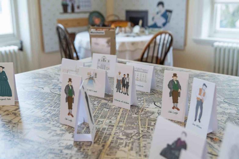 The research for Tales of Manchester Life has been carried out by a team of volunteers who support Elizabeth Gaskell’s House. To bring their findings to life and to appeal to visitors of all ages the exhibition includes interactive features, as does the whole experience of visiting the Grade II* listed house. There is a map that highlights some of the locations around Victorian Manchester that inspired some of the settings and storylines that Elizabeth pursued, places like the Mechanics’ Institute, Angel Meadows and Hulme Barracks. A cosy, bright and inviting tea party corner is an important reminder from Mary Barton that working class life during the industrial revolution was not one dimensional.
