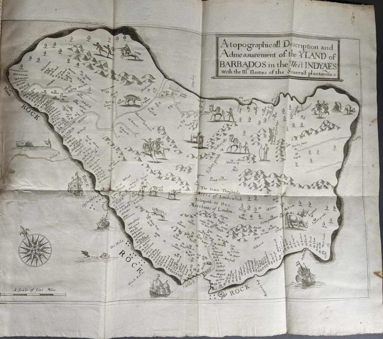 A second edition copy of A True & Exact History of the Island of Barbadoes (1673), by Richard Ligon, has an estimate of $1,500-$2,500. The folio, with a folding map of the island, three charts and six plates, is from the library of John Roland Abbey, the renowned book collector and bibliographer of travel books. It’s an early account of Barbados, with documentation on cocoa, cucumbers and pomegranates, as well as illustrations of bananas and pineapples.