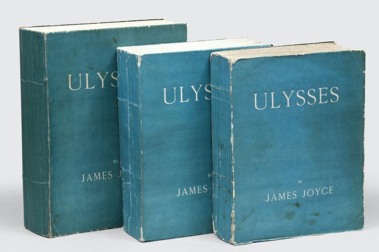 Peter Harrington’s new catalogue features not one but three first editions of Ulysses, one of each issue, including the coveted 100 signed by Joyce, all in the original blue wrappers. Presenting all three together is a feat seldom achieved in the trade.