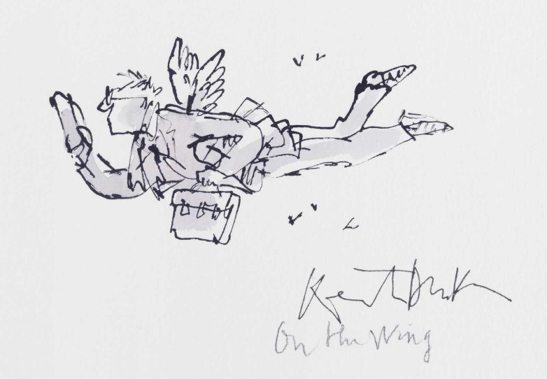 The sale includes 16 works from Quentin Blake’s book On the Wing (2020) including the original work featured on the book’s cover, and an additional alternative cover executed in 2018.